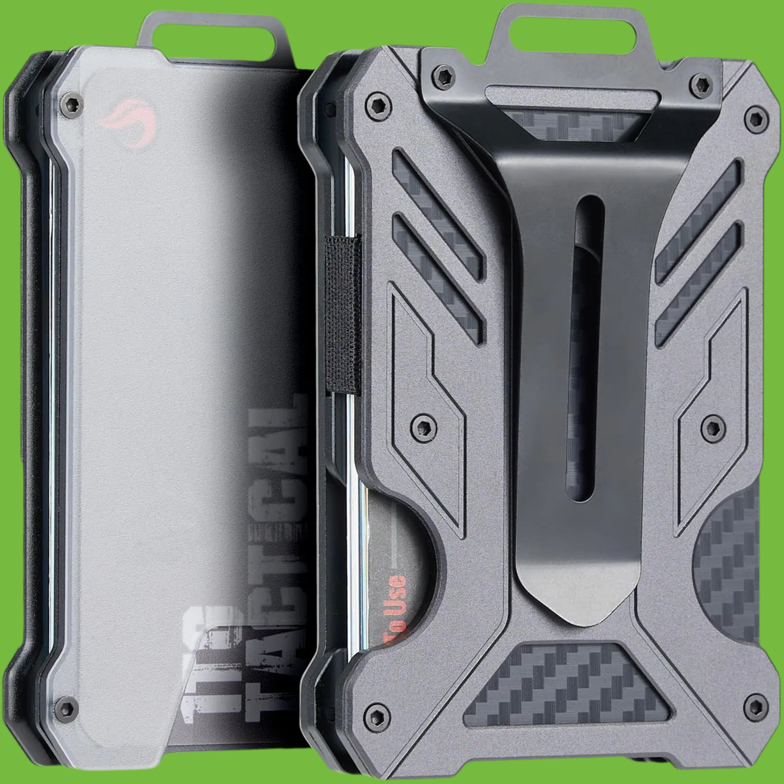 1TG Tactical Minimalist Slim Wallet with Moeny Clip Front Pocket RFID Blocking Wallet Cash Holder Versatile Credit Card Orgainzer ID Card Badge Holder for Men
